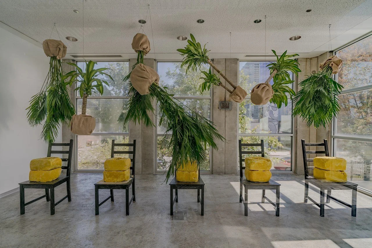 Down at Hyde Park, The Renaissance Society’s new exhibition, however, departs from Chicago’s local identity in comparison. On Sunday, when asked about The Renaissance Society’s curatorial model that gives its functions as a Kunsthalle, Walker, who is the former director of education and associate curator of The Ren and had been with the institution for 20 years, humorously but adamantly rejected the proposition: “No! In all the many tributes to Susanne [Ghez, former executive director of The Ren for four decades], I would always say no—she did not have a vision [for The Ren to be] a little Kunsthalle on the prairie.” But since Walker left The Ren in 2015, this independent nonprofit that sits on the top floor of a lecture hall of UChicago has very much seen curators hailing from Europe running it as an internationally relevant Kunsthalle, aesthetically detached from what’s considered Chicago. Its new exhibition, for example, especially reflects that. With the windows lined with privacy film and the interior painted entirely yellow—from ceiling to floor, the rather insular space draws all the attention to a monolithic LED screen that loops Italian artist Diego Marcon’s newly commissioned musical dance film, in which clothing pieces gently harass an androgynous young kid as they fly around the bedroom while singing—“Why don’t you eat your krapfen?”