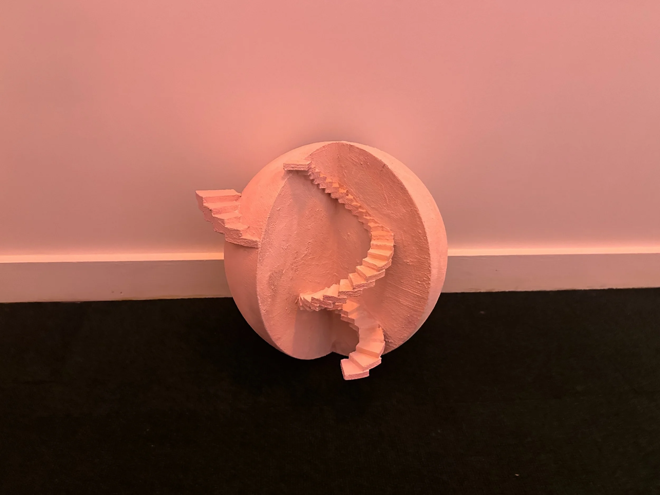 The exhibition centers on Li’s titular video (2025), set before four doors—two of which lead to rooms with another video installation by the artist titled In Anticipation (2025), as well as prints and sculptures that evoke M.C. Escher’s impossible staircases. We are confronted with an ouroboros of progress and regression, running in circles, stuck in a limbo, as though trapped in a malfunctioning elevator, helpless, objected to a blindsided futurity—a poignant sentiment in light of recent budgetary cuts in education, termination of grants, and dwindling opportunities for the arts.