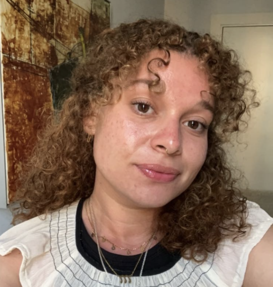 While printmaking is a medium that requires precision and linear construction, Shuai’s process is more additive, straying from the traditional practices of the medium and layering multiple textures into one piece. “I feel like in printmaking, everything kind of collapsed—you spend a lot of time and material, and you get this very minimal result,” said Shuai. “I want to go backwards and really display each step in a separate way.” Her style plays with negative space, and she deploys multiple printmaking techniques into one piece, from the Japanese mechanical printmaking risograph, to freehand illustrations, to standard acrylic paint.