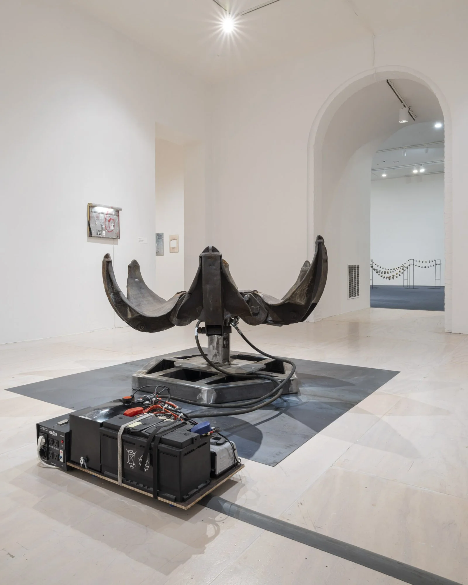 Like the rest of The Gatherers, Selma Selman’s Flower of Life (2024) comes together only after you’ve spent intimate time with it. The upended grab attachment—in a previous existence, a blunt instrument of construction—blooms, revealing and animating a few evocative painted eyes.
