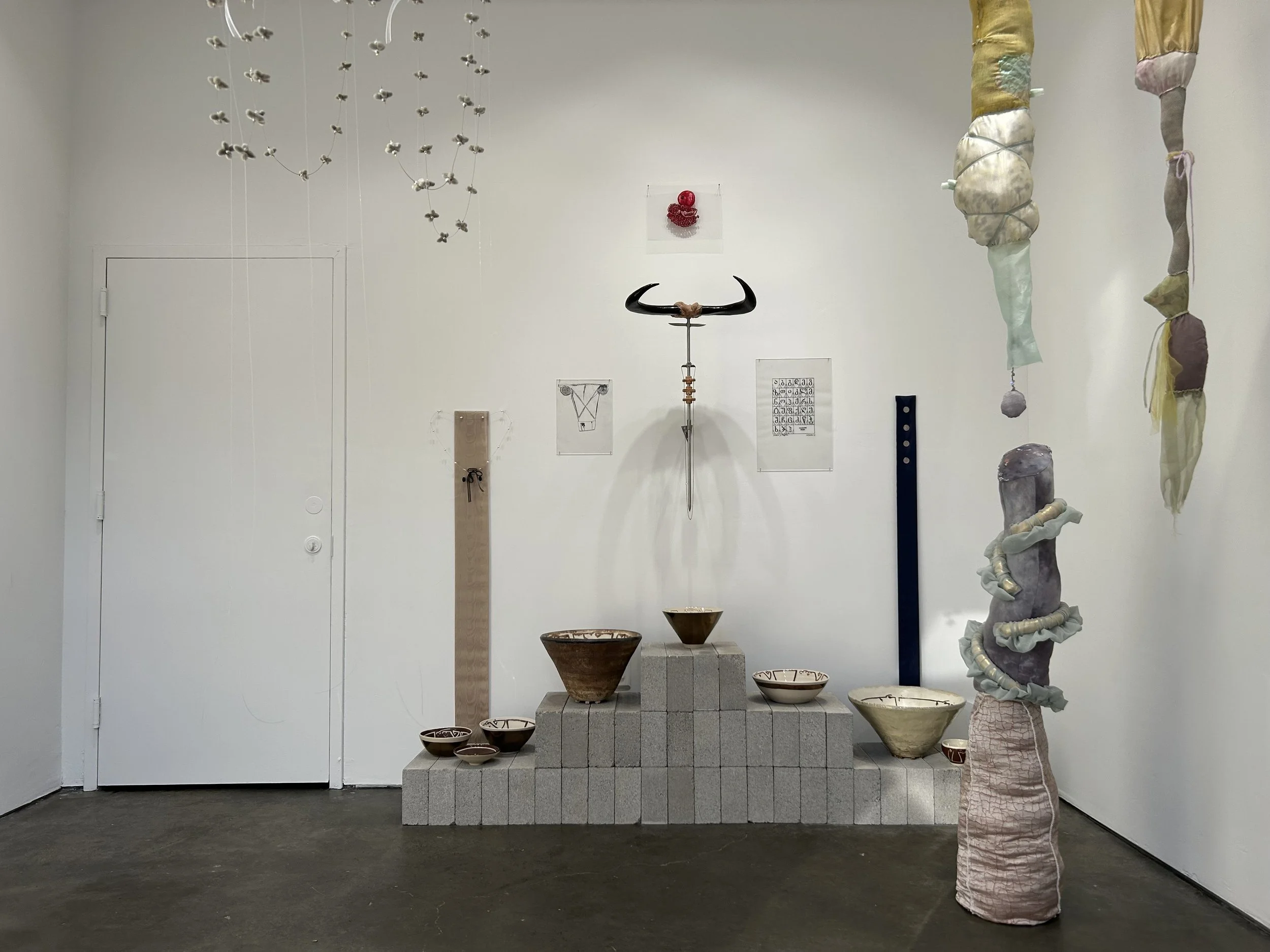 Quirno’s sculptures and Lutteral’s textile installation are a dynamic pairing. Lutteral’s almost anatomical piece, which could be a surreal study of the human figure, functions as an archive of the body and its many possibilities, while Quirno’s sculptures bring to the surface a more abstract side of a person’s life.