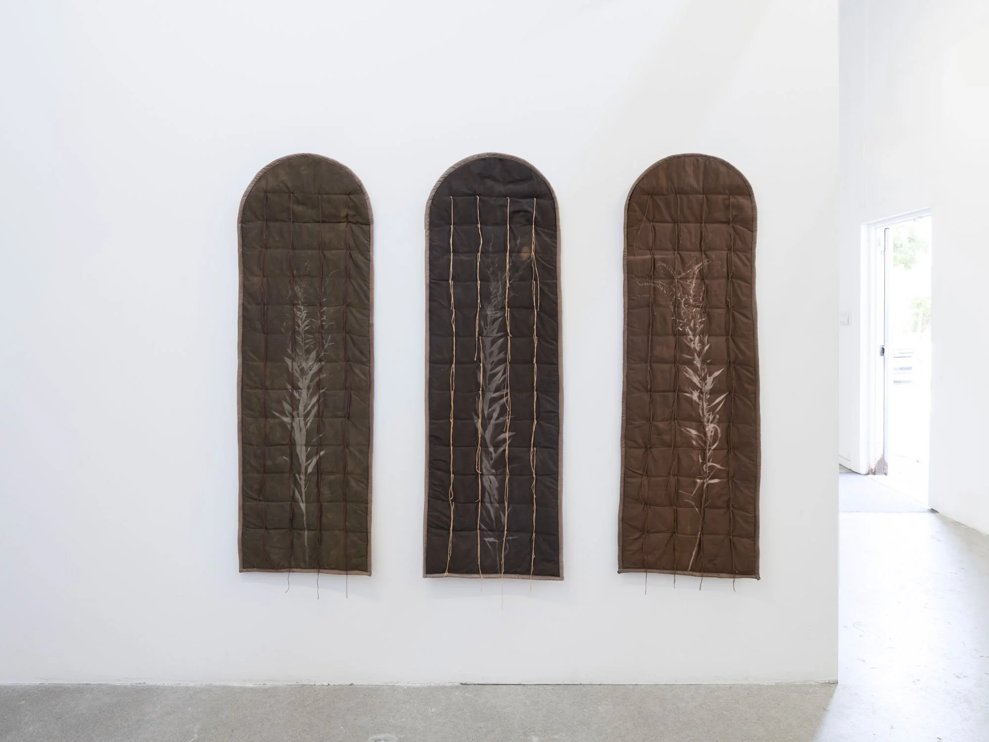 Chang, whose practice started in photography, has recently expanded to include textiles, ceramics, and other craft-based techniques. For this series, cyanotypes on fabric are stripped of their signature indigo-blue hue, toned with walnuts and black tea to produce deep and dark shades of brown.