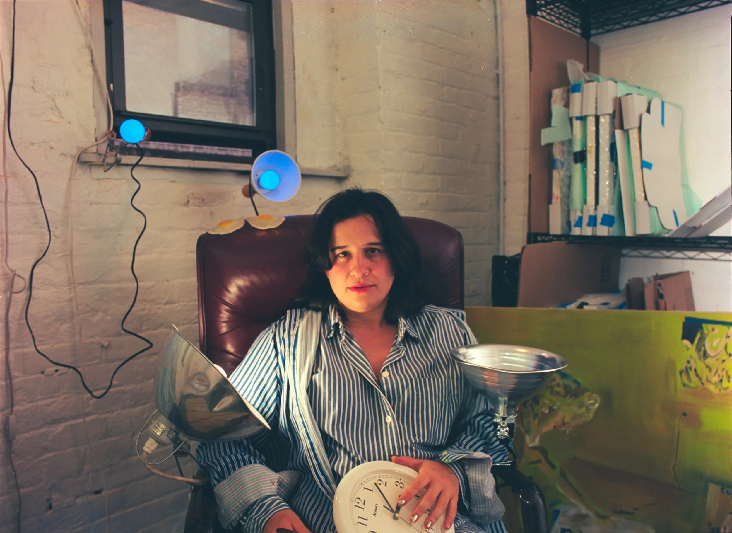 Every painting is the product of an invisible durational process between bodies and movements through space. In their Brooklyn studio, Alex Schmidt investigates this reality by painting still images from their figure drawing performance pieces, where they conjoin the roles of artist and model. In the hundreds of these performances they’ve done, Alex poses as different exaggerated characters, often nude or in absurd costumes. While holding still in these brief windows of time, Alex accesses a pause—a respite from the tumultuous life of an artist and a gig worker. They propose figure modeling as a moment of relief while still being both literally and metaphorically “on the clock.”