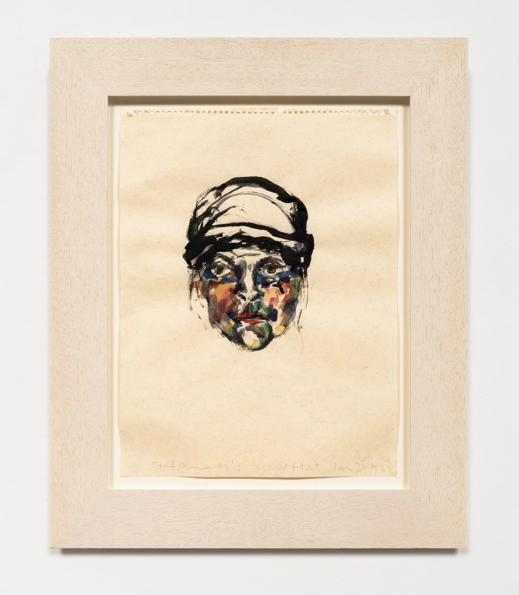The brushstroke—or the “stroke” itself—likewise functions as both verb and noun. Wilke’s B.C. Series (1989–90) of watercolor self-portraits exemplifies this duality. Loose marks in bright colors coalesce into abstract visages with only the faintest hints of facial features. Within each portrait, scaled to accommodate her sweeping gestures, repeated marks lend rhythm without settling into stable representational logics. The presence of the artist is more keenly felt through each stroke than through the visual itself.