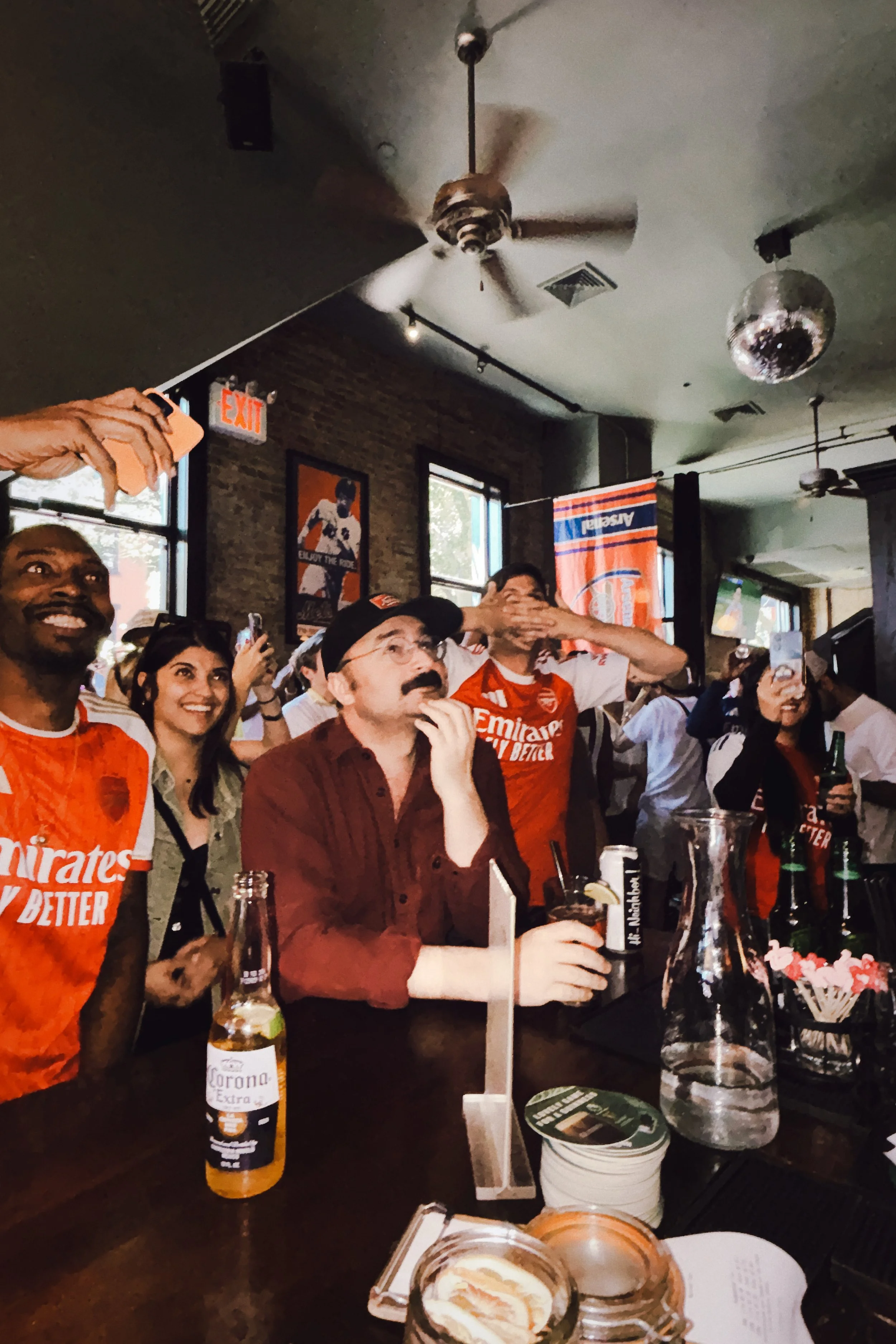 The quarterly organizing conceit in Q3’s title is ultimately a loose one, but loose in the way a big tent is, allowing wider admissions. Formal rhymes between the pieces are tighter. The minimal body outlined in blue and red of Cameron Spratley’s Black Figurative Painting (2025) pairs seamlessly with the shapes and colors in Nina Hartmann’s Orgone Accumulator Diagram (2024) installed adjacent to it. A trapezoidal plinth holds a deer carcass cast in pale pink silicone that Leif Jones has elaborately tattooed in many colors and styles. Baroque frames, slickly fabricated by an athletic gear manufacturer for Diego Gabaldon, suspend his enhanced and remixed images of international football hooliganism in a series of angular planes resembling cleats and padding. Jumpy geometries like these are present throughout; the acrylic frame of Sean David Morgan’s Front Yard Gate (2022) is topped with three cresting tips that resemble the heads of bishops from a traditional chess set. It’s a pointy, prickly exhibition that suggests the feverish stringing of yarn between pushpins on a conspiracist’s corkboard.