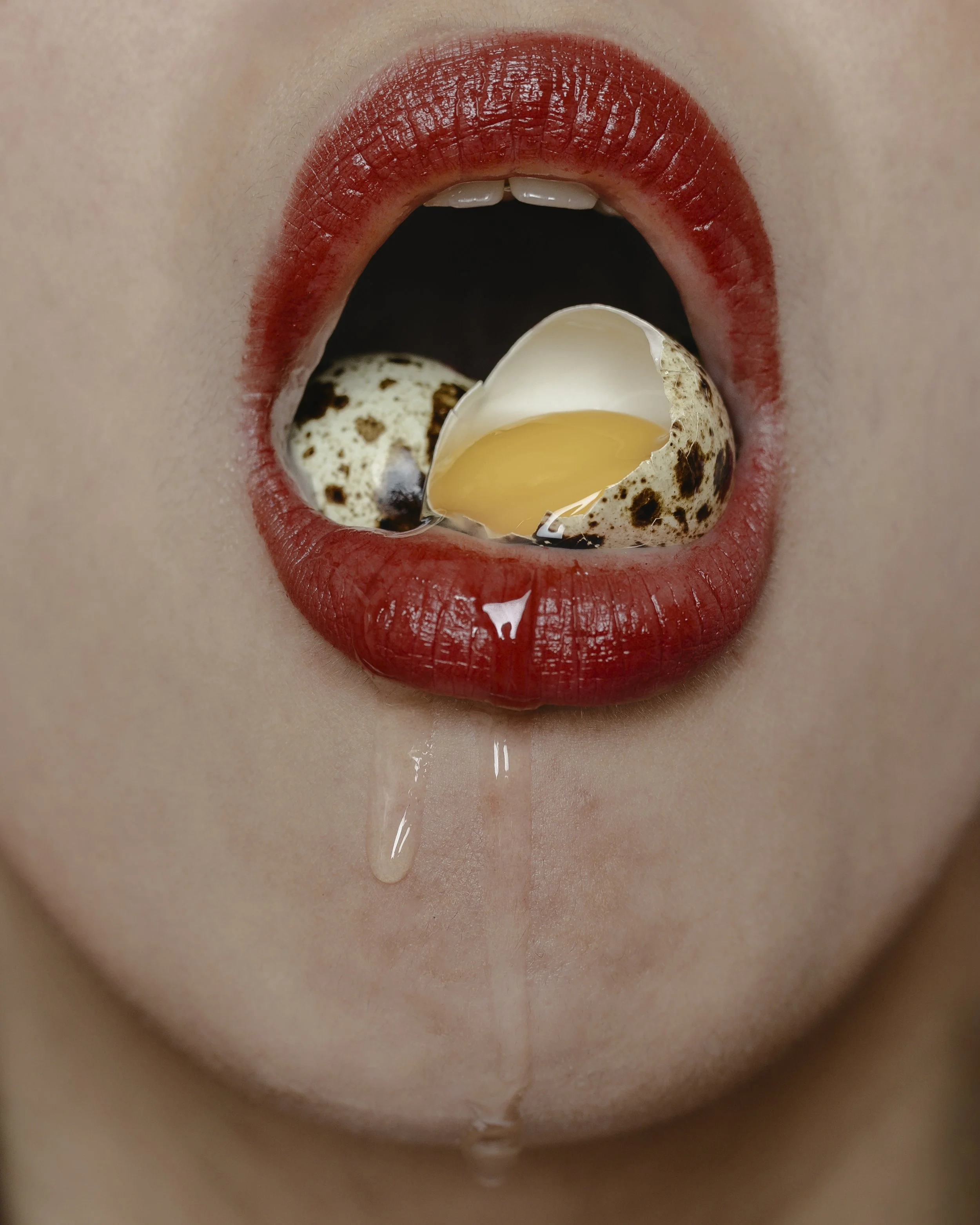 AN: Some images are directly inspired by myth and are staged to represent a specific memory or story. But most images begin with me noticing objects in my friends’ homes, and those items would inspire me to think of stories I could recreate as an image. For example, the egg image. I had wanted to use these quail eggs I got from a Vietnamese supermarket in an unexpected setting. After I took the photograph, I thought about the myth that could accompany it.