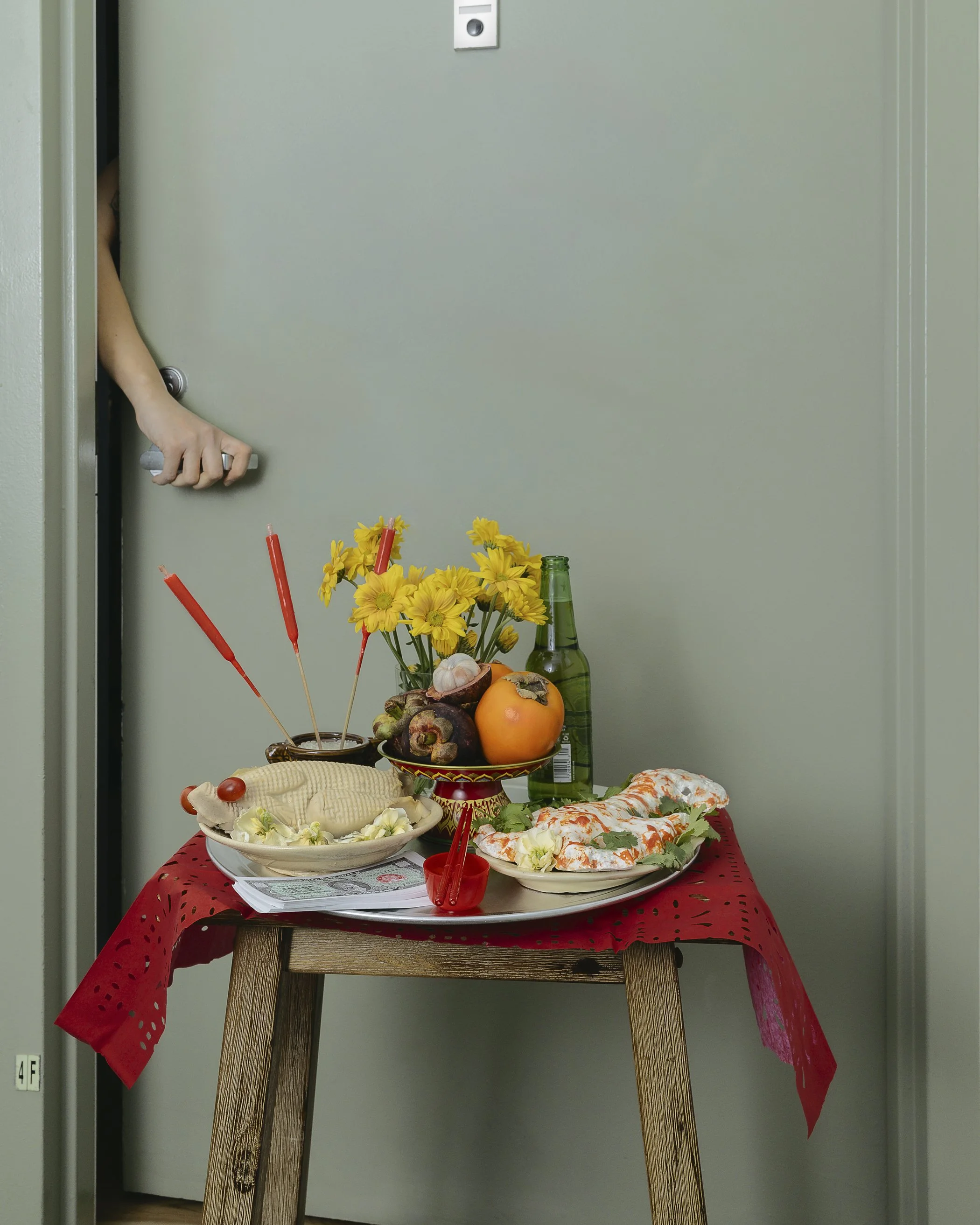 Nearly a decade after leaving her family and home in Saigon to attend school in the United States, Brooklyn-based photographer Anh Nguyen began her photographic project, The Kitchen God Series. Creating a world that playfully moves between investigation and staged imagery, fiction and documentary, Nguyen examines how she and her friends, a younger generation of Vietnamese people in New York City, integrate tradition into their own lives abroad.