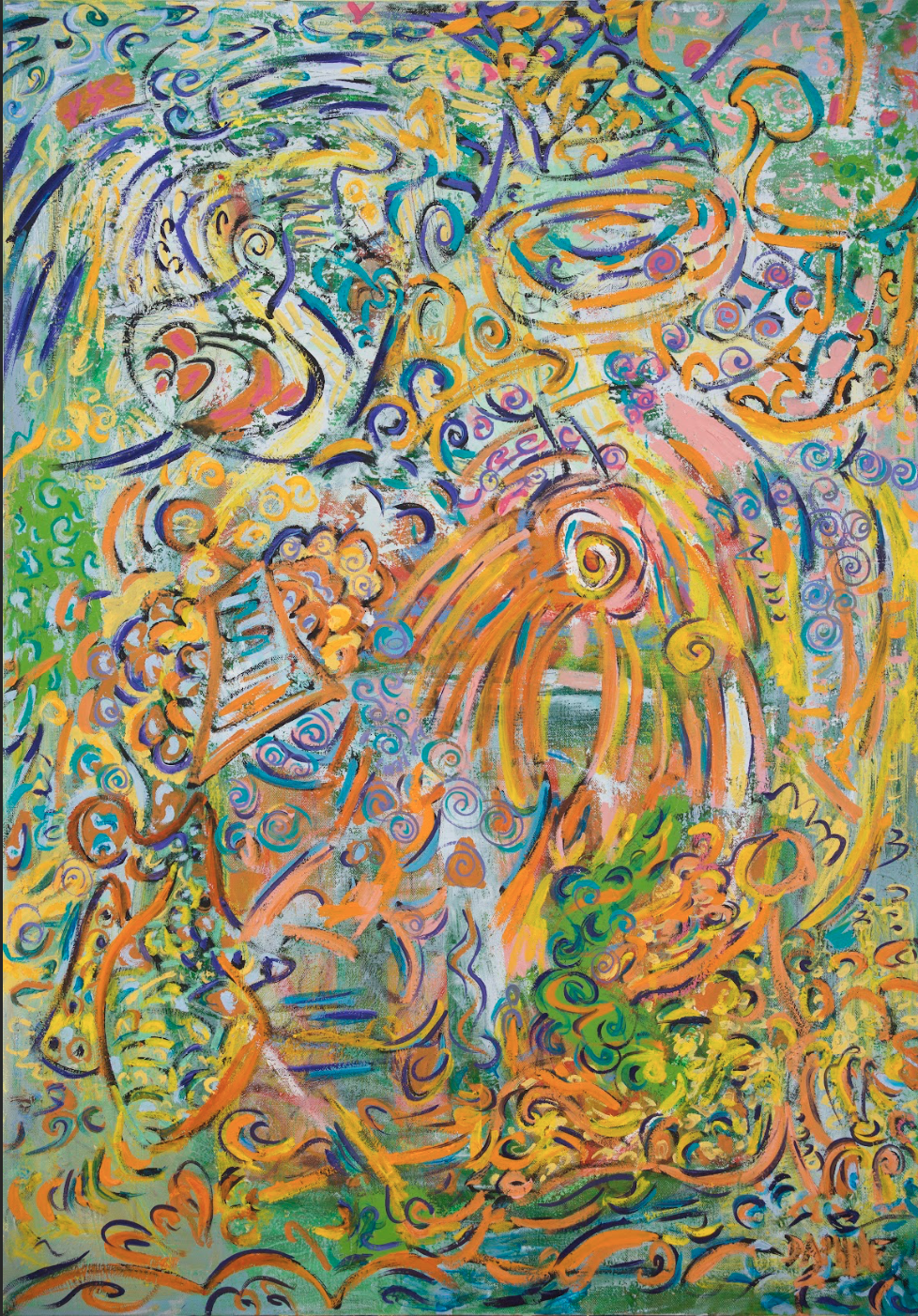 London-based gallery ArtDog stood out in the mix, with Philip Williams’s self-described “Bacoquerie” style taking the main stage. Exploring themes of baroque and rococo, as one would imagine, the resulting style is a highly saturated composition that examines the border of representation and abstraction. REFUGE & ETERNITY (2024) is a vibrant, familiar-yet-unfamiliar representation of classical forms, contemplating European signifiers of status and authority, subverting the strict classical rules, and placing the fresco-inspired works in a contemporary context.