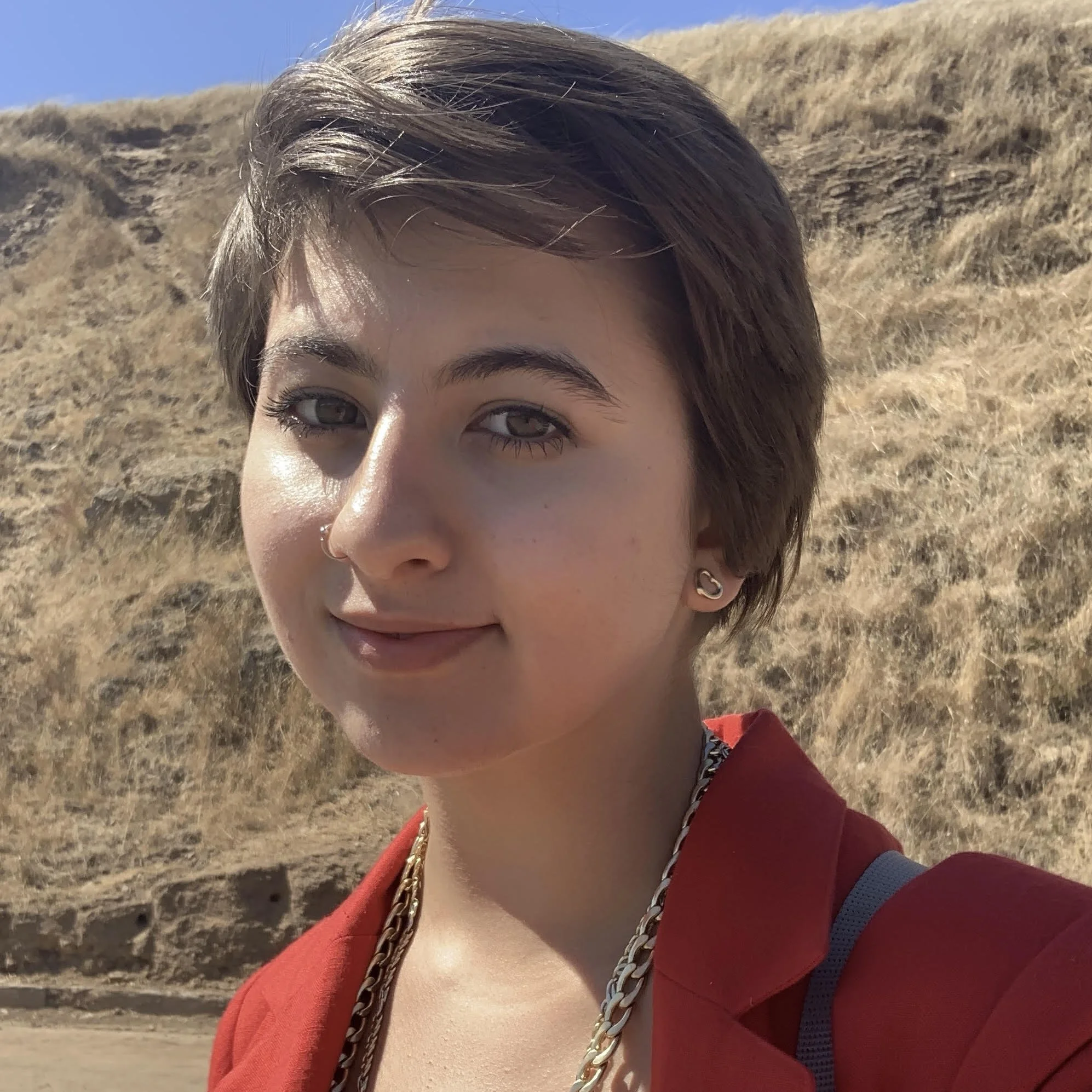 The Play About Color (2025) features stalks of corn in the foreground, perhaps set against the side of a country house; Backyard in Red (2025) depicts the view of Dinner Gallery from the back windows, which lead into a peaceful garden and patio space. In The Play of the Dead Horse (2018), the shape of a horse head rests in front of a decorated enclosure, fenced in by patterned fabric. The viewer may attempt to arrange these scenes into a coherent narrative, but they would find themselves at a loss. While bits and pieces of these representations are translatable, part of the work’s impact is to toy with the audience’s perception, leaving one with questions as to how much they can really see from behind the sheen of textiles.