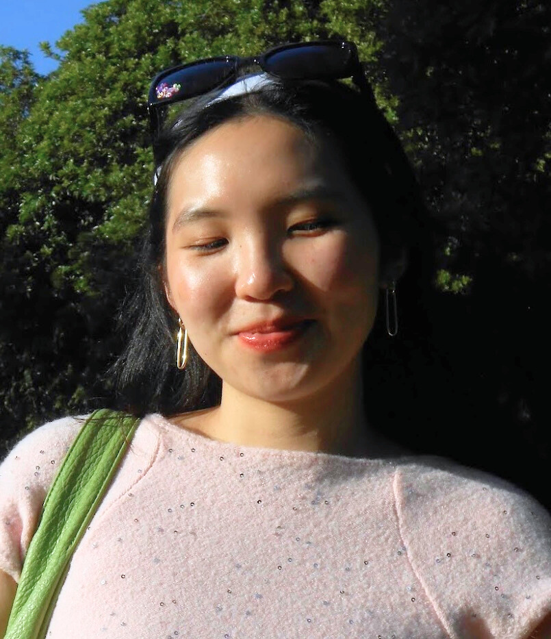 Besides serving as the genesis for a feminine community, one can also read M.’s use of identical figures as the atemporal manifestation of an individual’s bathhouse experience, speaking to the more introspective element of leisure. Definitionally, the onsen is cleansing. A smaller work at the beginning of the exhibition directly provides this internal perspective. A topless woman floating in a solid, dark background is surrounded by viscous, amorphous, and luminescent water that both swirls around her chest and falls atop her head. The painting is devoid of any indications of the setting, entirely focused on capturing a sensation. The water purposefully curves around the central figure, defying gravity to gently immerse her in its embrace. In this scene, bathing is magical, comforting, and even transformative.