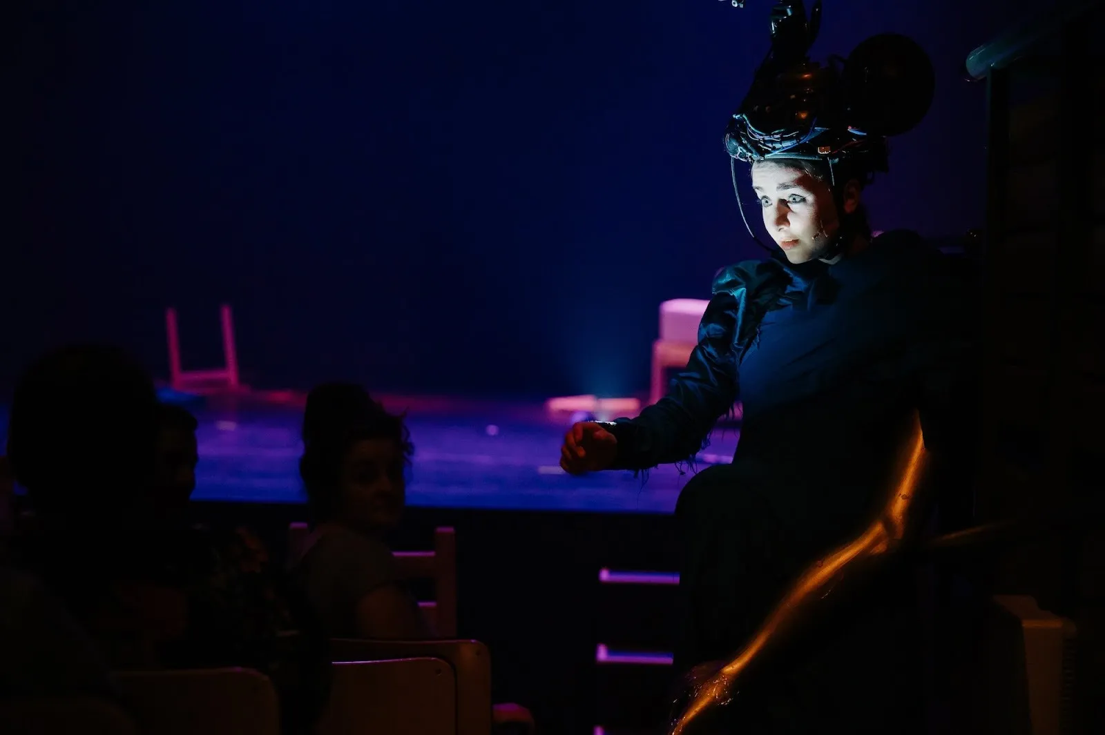 Julia Masli, a self-described clown from Estonia, has masterfully crafted her performance piece Ha Ha Ha Ha Ha Ha Ha to resituate the theater as a space for communal healing. Adorned with the limbs of a mannequin comically placed over her own and dressed in a makeshift gown of sweeping blue fabric accommodating her additional plastic limbs, Masli leans into levity to disarm the audience, but her humor is punctuated by her perpetually curious demeanor and legitimate yet funny attempts to solve the problems of audience members. Masli randomly selects audience members to present their problems, subverting the rigid structures of theater, surrendering her control as a performer, and prioritizing the audience over any set agenda, plotline, or artistic objective. While Ha Ha Ha Ha Ha Ha Ha is technically a one-woman show demonstrating Masli’s command of entertainment value, artistic ingenuity, and charisma, Masli’s greatest talent falls outside the scope of traditional art forms and is rooted in her ability to foster connection.
