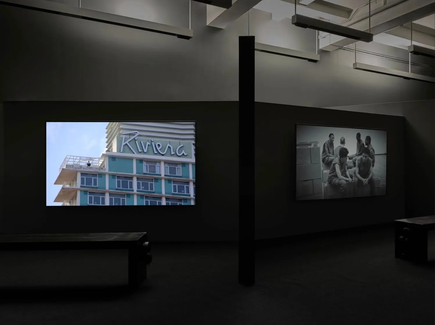 Special attention should be given to the show’s broader display of video installations, several of which are quite substantial, with one lasting over an hour. La noche eterna (The Eternal Night) (2023), for example, is a film based on the Cuban writer Néstor Díaz de Villegas, who was sentenced to six years in prison for writing a poem. There is also Vivir en junio con la lengua afuera (To Live in June with Your Tongue Hanging Out) (2018), which adopts a rhythmic documentarian approach to memorialization and presents a poetic homage to the queer, exilic Cuban writer Reinaldo Arenas by returning to Havana’s Lenin Park, where three contemporary Cuban artists recite his most famous poems.