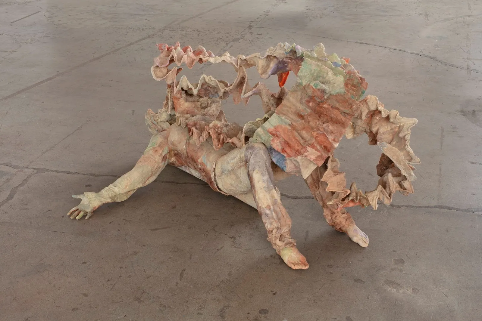 Through her fusion of organic and artificial materials, in which the difference between the two becomes indistinguishable, Grinnan’s sculpture renders human anatomy as a sprawling terrain. In doing so, the artist simultaneously personifies the desert as a living entity and dissolves preconceived boundaries of human subjecthood as separate from its surrounding environment.