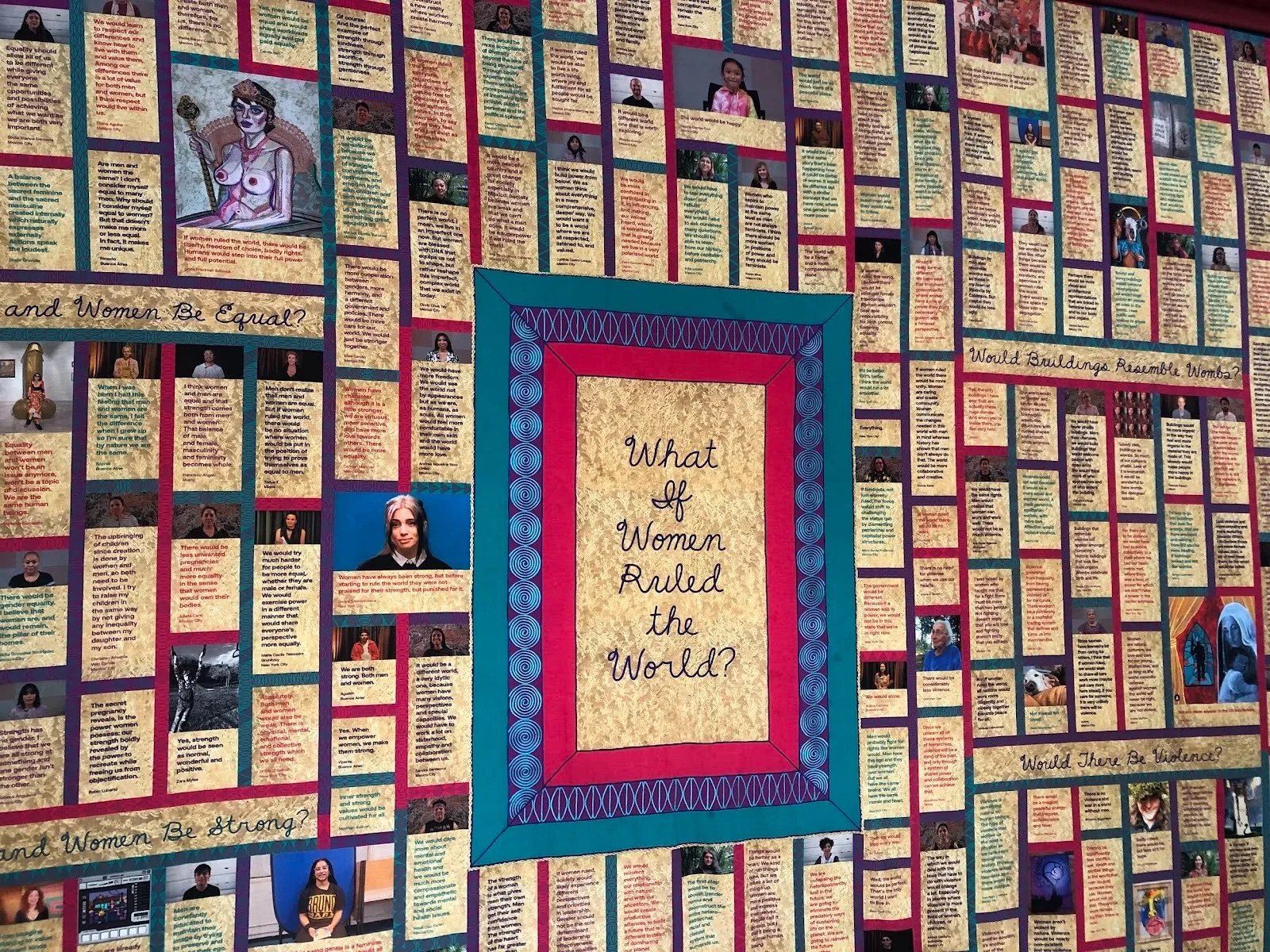 One of the free public outreach exhibitions at Contemporary Istanbul featured an installation by Judy Chicago, What If Women Ruled The World (2022–), with Nadya Tolokonnikova, effectively functioning as a tapestry knit together with portraits of women and their quotes answering the titular question along with follow-ups such as “Would Buildings Resemble Wombs?” or “Would There Be Violence?” The piece will circulate around the globe with contributions from the Turkish women who visited during Contemporary Istanbul.