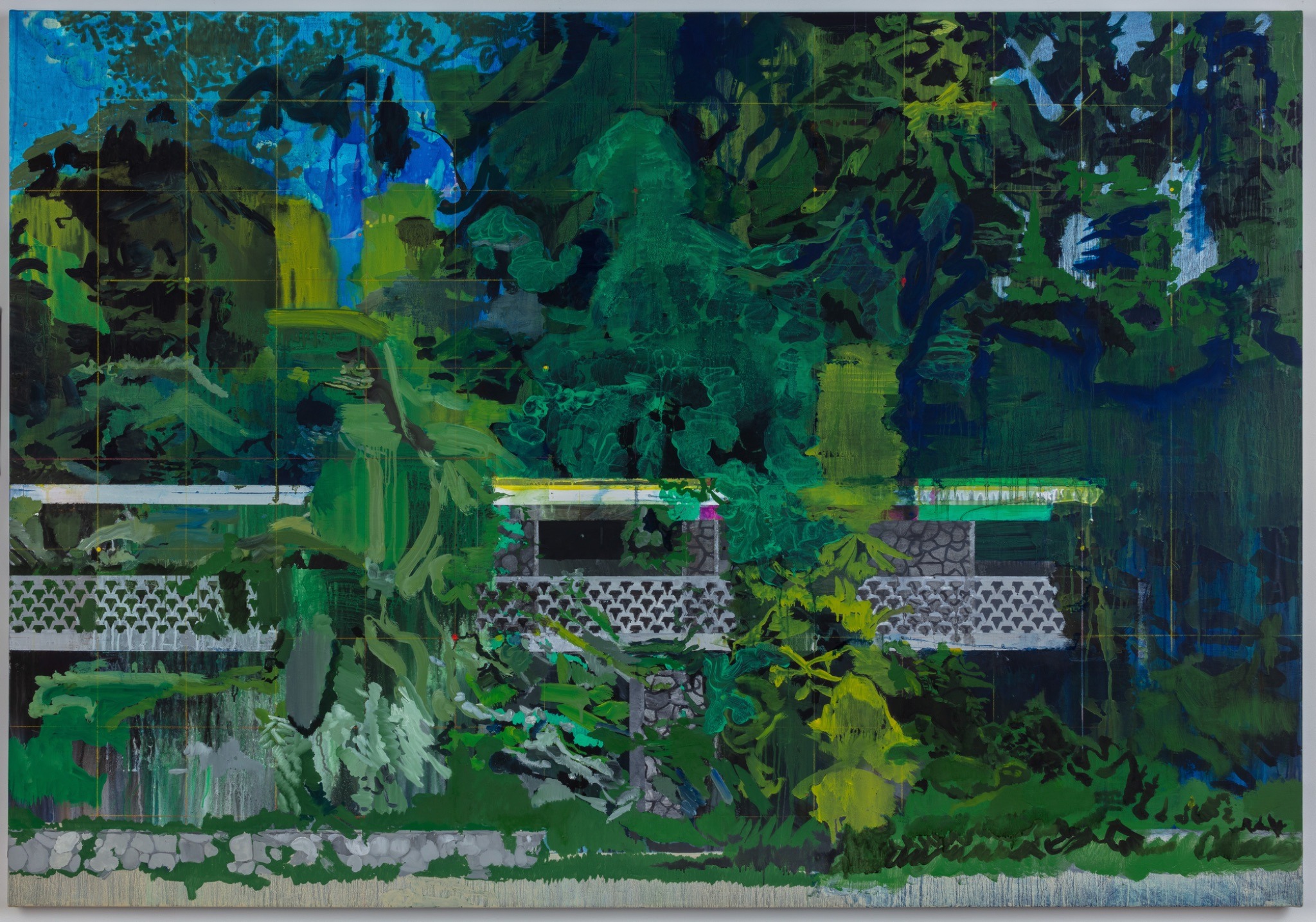 These paintings—fragmented distillations of cultural heritage—simultaneously work through the slippages of photography as a repository of collective cultural memory. Recalling the profound impact of photography on the genre of landscape painting in pushing artists toward abstraction, Anderson often layers scenes and revisits subjects from multiple perspectives, resulting in a kind of visual drifting.