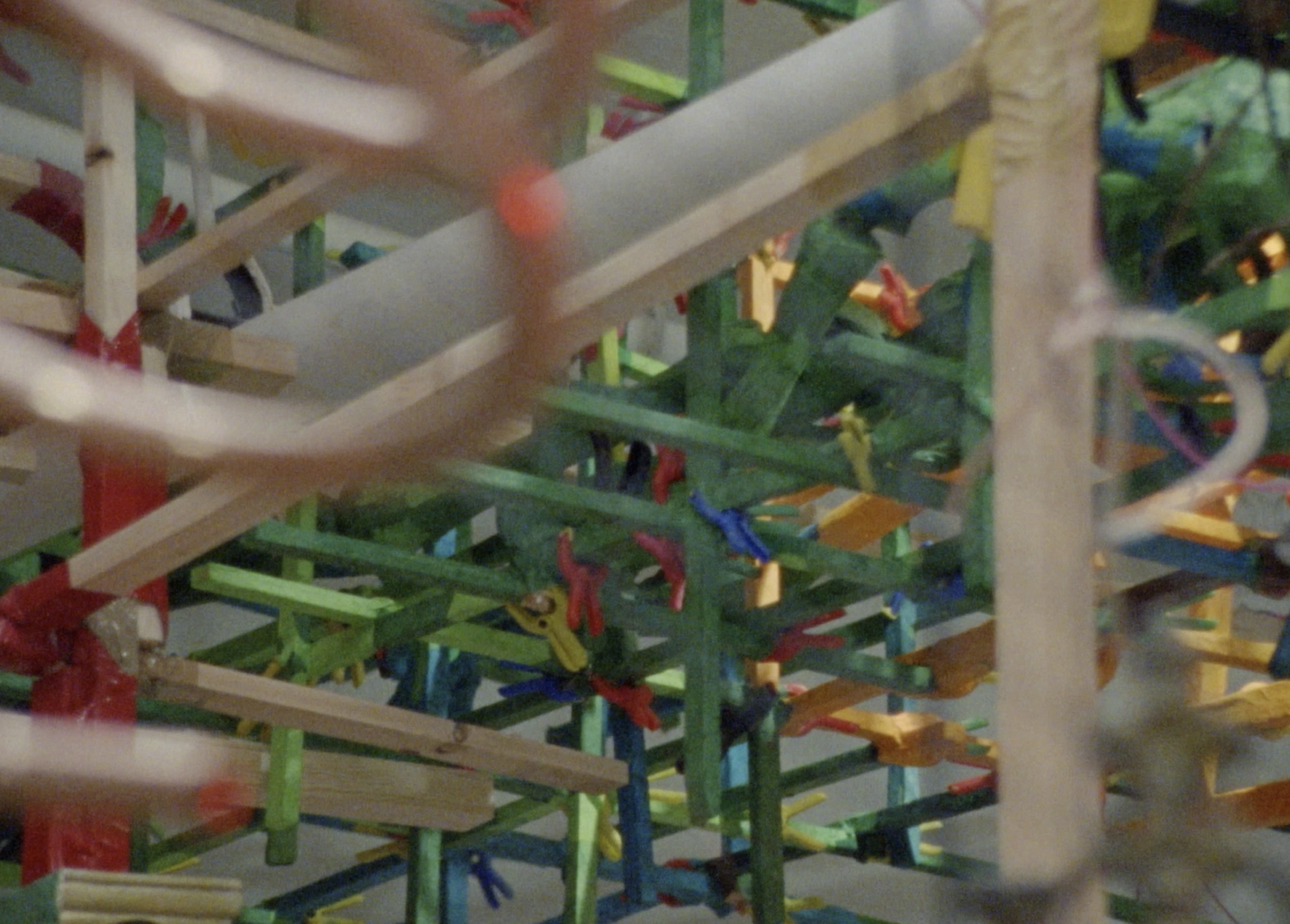 PSF: It’s kind of like a fort, or scaffolding that’s taped together haphazardly. There’s no nail support; it’s all using the space itself as support and then building away from or within that. It began as an experiment, and the more I worked on it, the more I realized it had all these other questions about connecting with loved ones and finding places of sanctuary. It turned itself into that. Some days it would just be me, or it would just be Char, but the days when we were both here, we would have conversations about this. Then it became more apparent that there was actually a lot of crossover in our work.