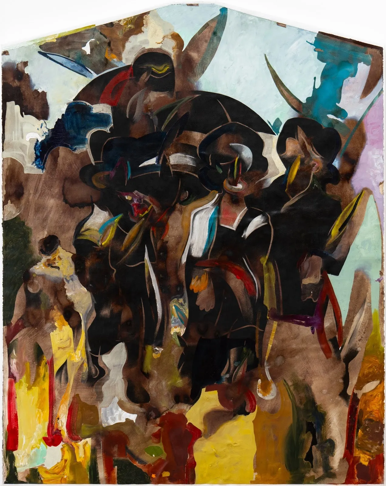 Deviating from the romantic and sublime, Leasho Johnson has illustrated the discordant and organic pandemonium of existence in Sound turns to mid-morning and then the silence of noon (2023). Through an orchestra of figures woven together into one living creature, Johnson captures the confusion and ethnocultural complexity which Bayer has curated across the exhibit. The parallels between global metropolitan identities in Istanbul and New York are endless, and Metropoli reflects the present moment defined by a transformative shift in understanding the ways we move throughout urban landscapes—spaces that engender chaos yet offer potential.