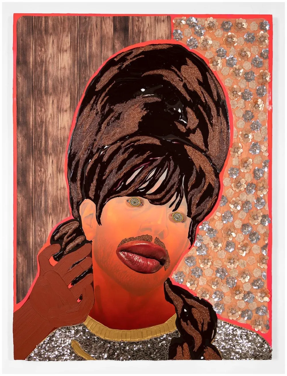 Devan Shimoyama engaged my inner Club Kid at Kavi Gupta with his heavily embellished Self Portrait As Ronnie, which uses a wide range of materials. Despite its elaborate, ornamented quality, there’s still a quietness that occurs, a passivity. The figure’s jeweled eyes convey melancholy, and there’s a ghost-like quality to the face that lingers beneath all the drag—a sense of disappearance and retreat, poignant and mysterious. Shimoyama’s work has been appropriately exhibited against the Ladies and Gentleman series in Cry, Baby at the Andy Warhol Museum.